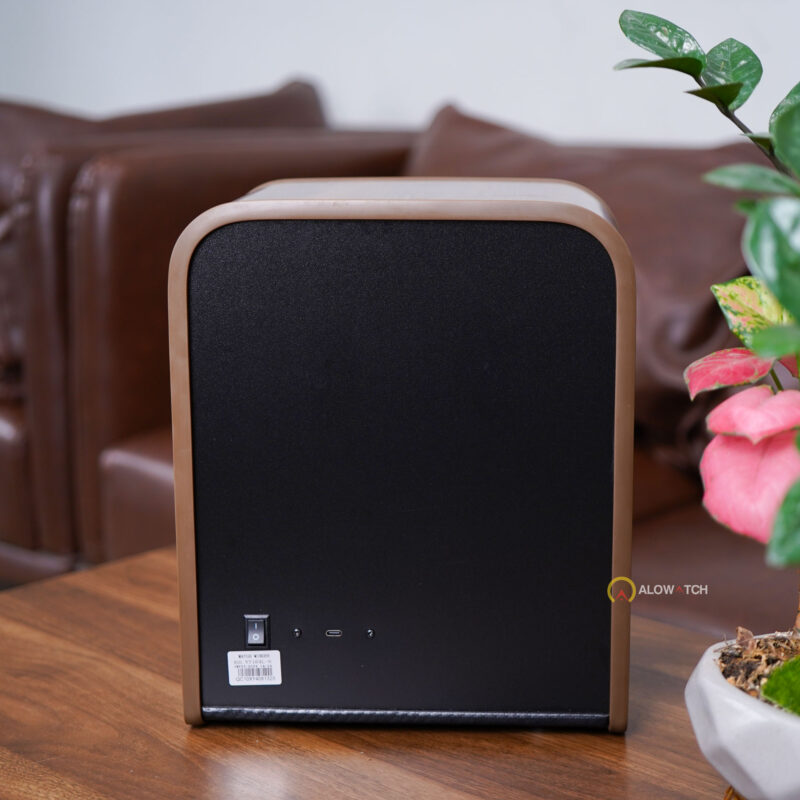 • Thiết kế hiện đại: Hộp có kiểu dáng hình khối vuông vắn, phủ màu đen sang trọng, mặt trước là cửa kính trong suốt giúp dễ dàng quan sát đồng hồ bên trong.