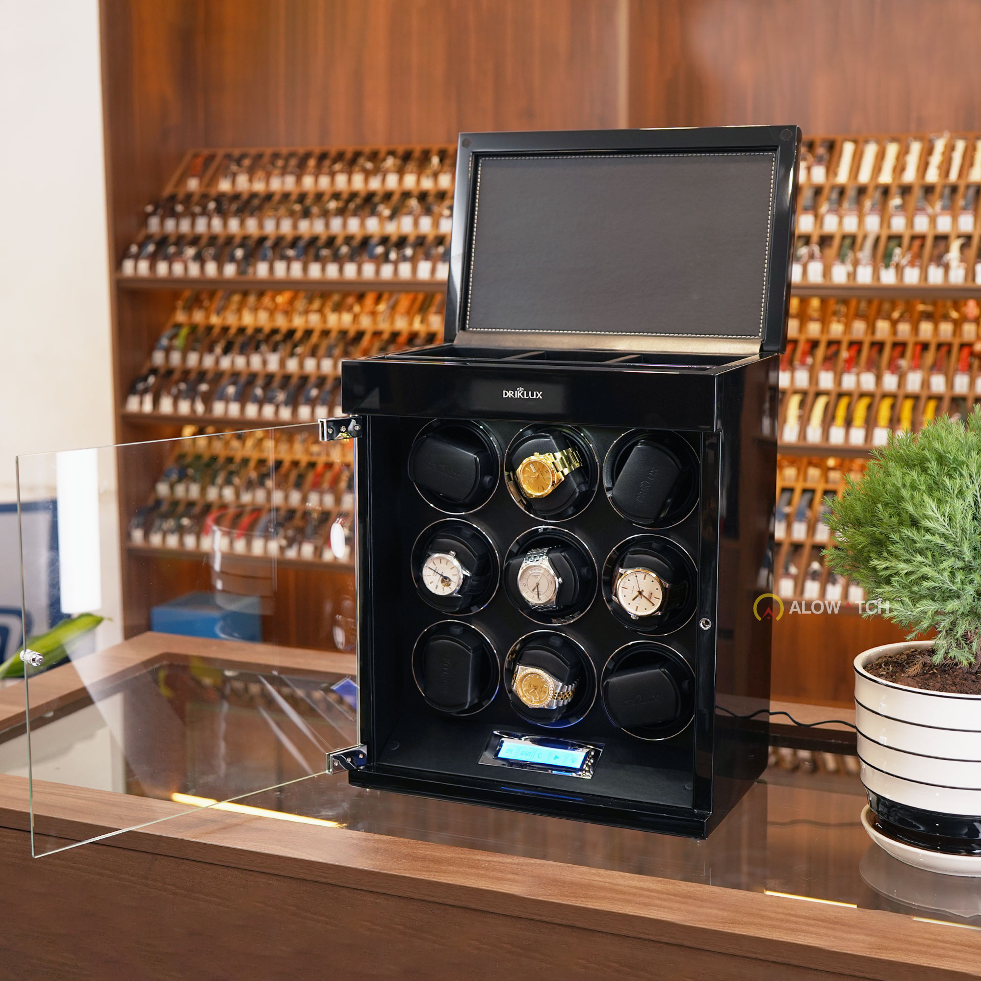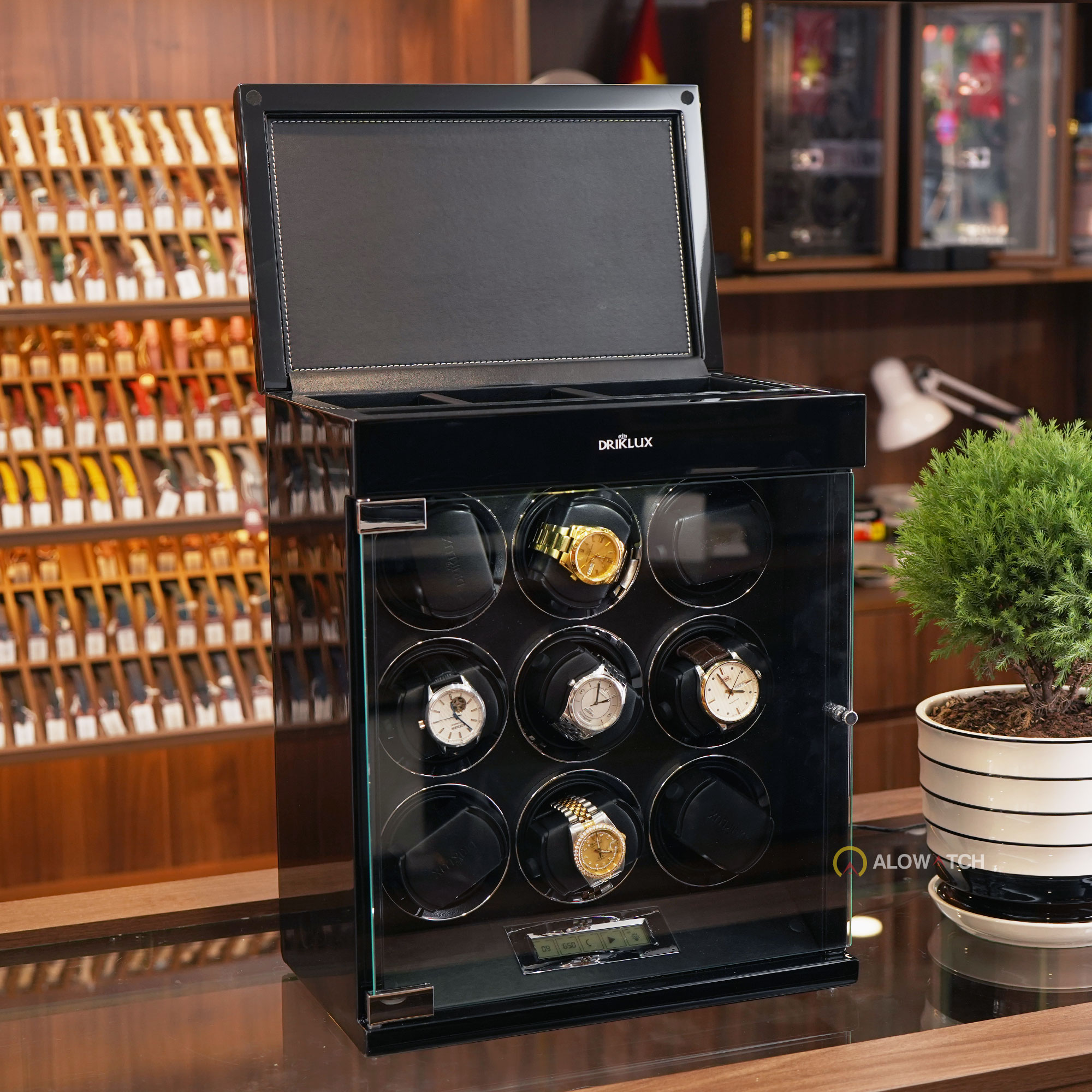 Chiếc hộp trong loạt ảnh anh gửi là mẫu hộp xoay đồng hồ 9 ngăn cao cấp Driklux, tích hợp nhiều tính năng thông minh, phù hợp cho người chơi đồng hồ chuyên nghiệp có bộ sưu tập lớn.
