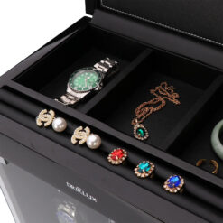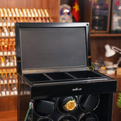 Ngoài ra, hộp còn trang bị khóa vân tay bảo mật hiện đại, giúp bảo vệ bộ sưu tập đồng hồ an toàn tuyệt đối. Motor Mabuchi Nhật Bản đảm bảo vận hành êm ái, bền bỉ và tiết kiệm năng lượng.