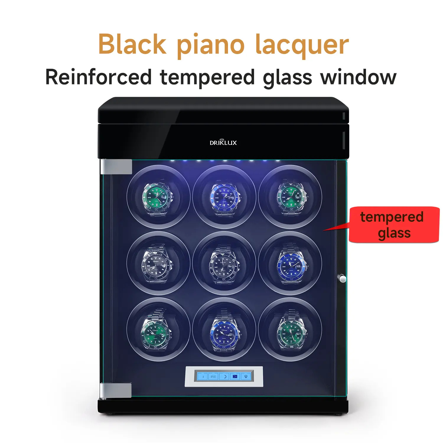 👉 Đây là mẫu hộp xoay 9 ngăn Driklux cao cấp, tích hợp màn hình cảm ứng + khóa vân tay thông minh, rất phù hợp cho giới sưu tầm đồng hồ cao cấp muốn kết hợp giữa bảo quản, an toàn và thẩm mỹ.
